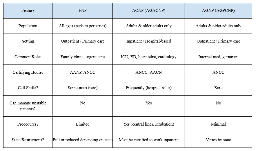 Quick Comparison: FNP vs. ACNP vs. AGNP
